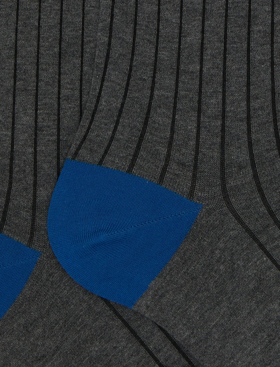 Calze lunghe da uomo realizzate in Italia in morbido cotone 100%. L'iconica trama a coste, nei toni del blu, rende queste calze un vero dettaglio di stile, aggiungendo un tocco di eleganza su qualsiasi tipo di look. La vestibilità perfetta Gallo, sinonimo di qualità italiana dal 1927.