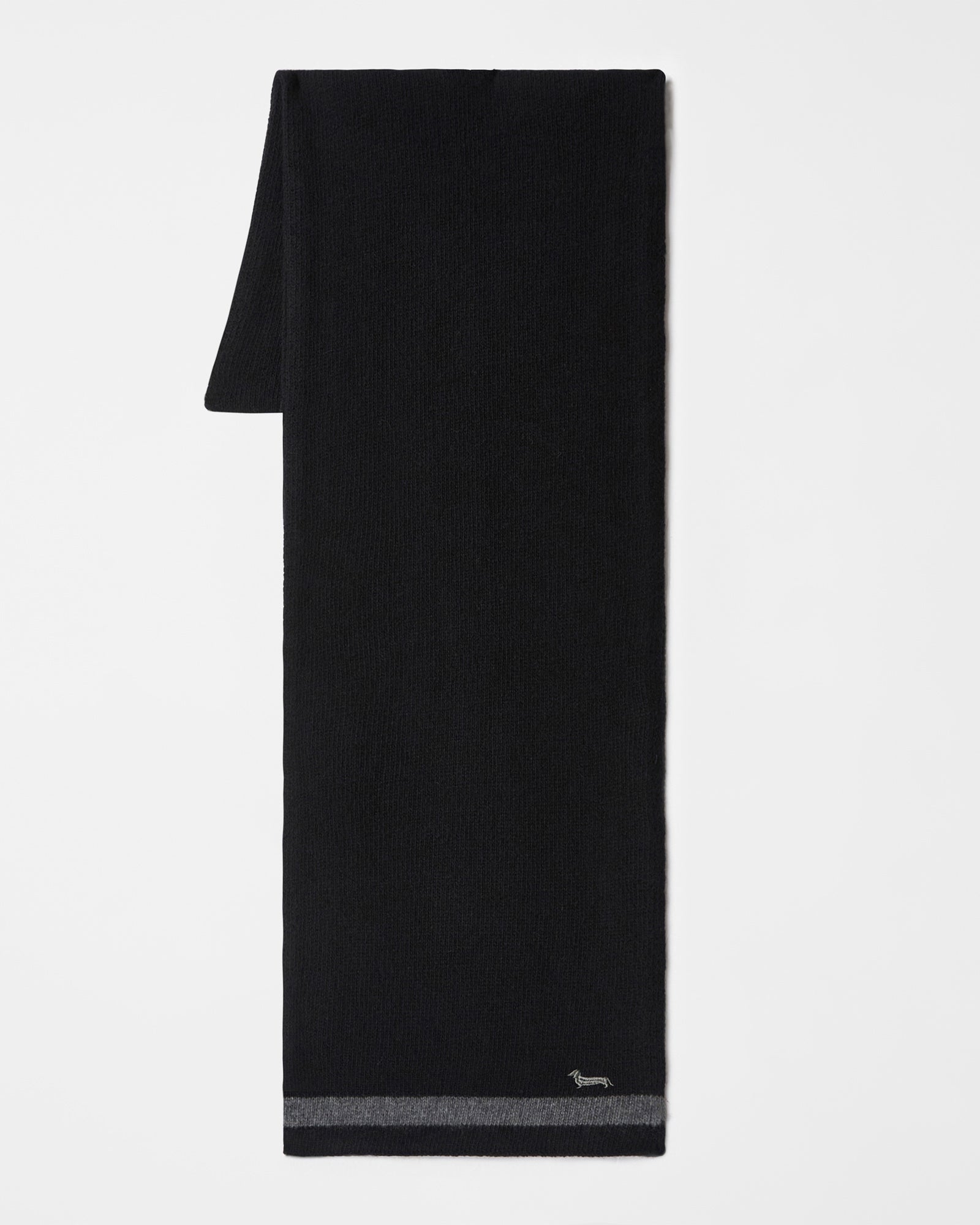 Realizzata in caldo misto lana e cashmere, questa sciarpa da uomo firmata Harmont & Blaine è pronta conferire un tocco di personalità ai vostri outfit invernali. L'accessorio, dall'aspetto sobrio ed essenziale, è ravvivato all'estremità da un righino a contrasto accompagnato dall'immancabile bassotto Blaine ricamato anch'esso a contrasto.